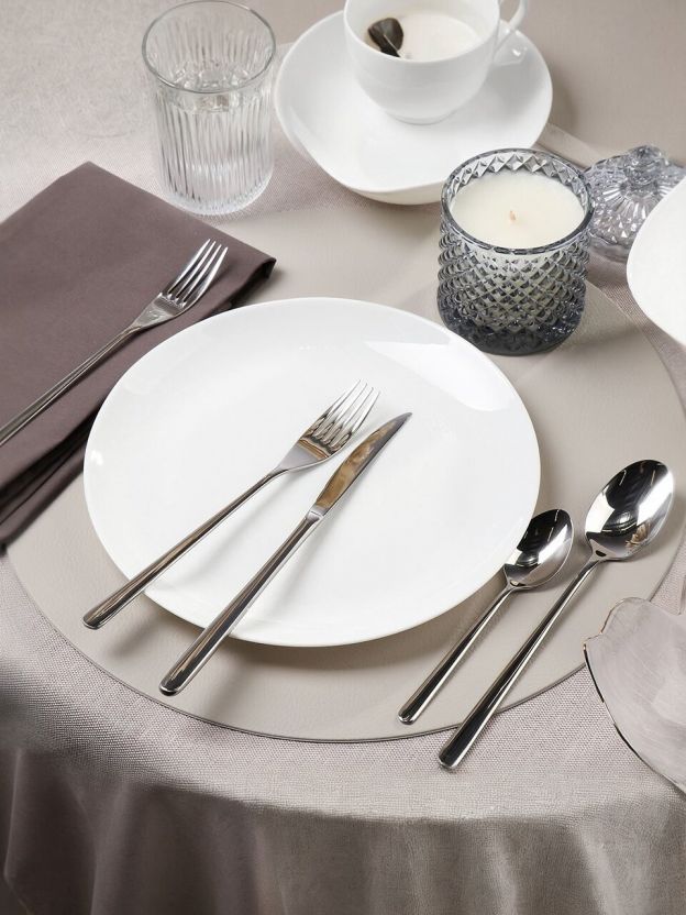Набор столовых приборов из нержавеющей стали Daniks Element — это 24 предмета для полноценной сервировки стола на четверых. Серебристый цвет и минималистичный стиль органично впишутся в интерьер кухни, а тонкие металлические ручки удобны для любого возраста. Такой комплект часто ищут по запросам «какой столовый набор выбрать для семьи», «что лучше для дачи» или «купить недорого столовые приборы на подарок» — и он отвечает этим критериям: долговечность, универсальность, оптимальное соотношение цены и качества.