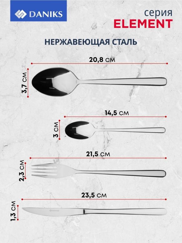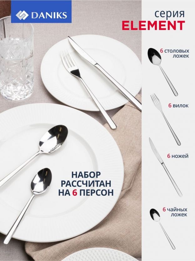 Набор столовых приборов нержавеющая сталь, 24 предмета, Daniks, Element
