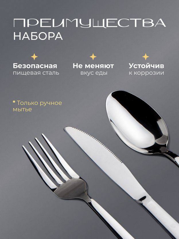 Выбирайте выгодно: закажите набор столовых приборов из нержавеющей стали с подарочной упаковкой — для себя или в подарок. Гарантируем быструю доставку и качество от проверенного поставщика.