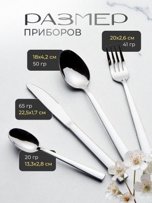 Как использовать набор столовых приборов? Подходит для сервировки основных блюд и чая, рассчитан на 6 человек, что удобно для семьи или небольших компаний. Если сравнивать с другими наборами, здесь оптимальное сочетание цены и комплектации, что особенно актуально для тех, кто хочет купить недорого столовые приборы для дачи или дома.