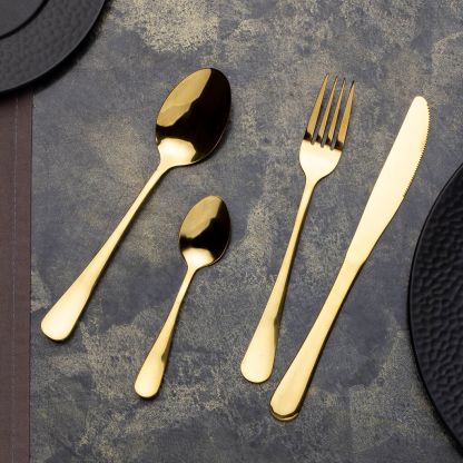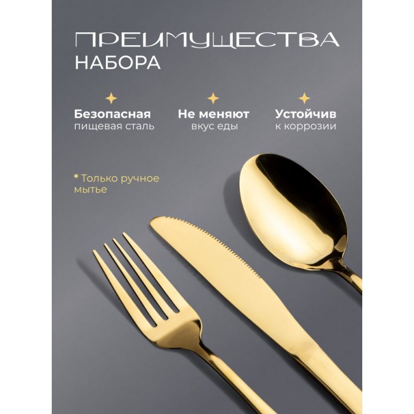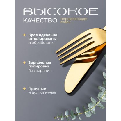 Набор столовых приборов 24 шт. на 6 персон: золотой глянец, современная классика для стильного стола и подарка. Удобство, долговечность, эффектный дизайн.