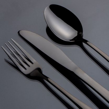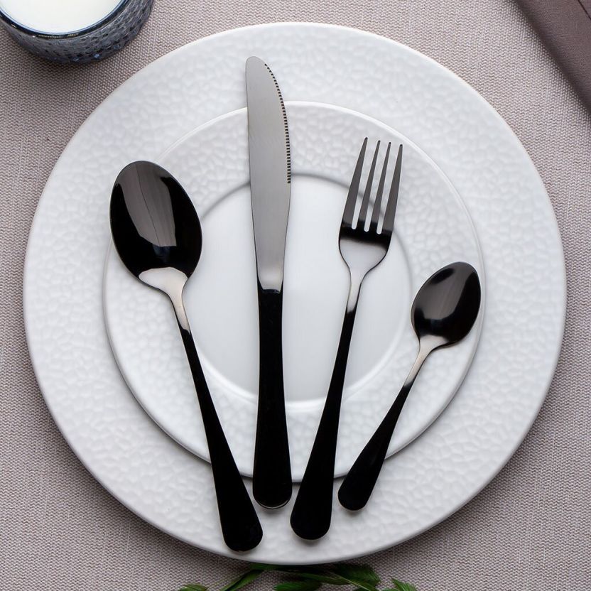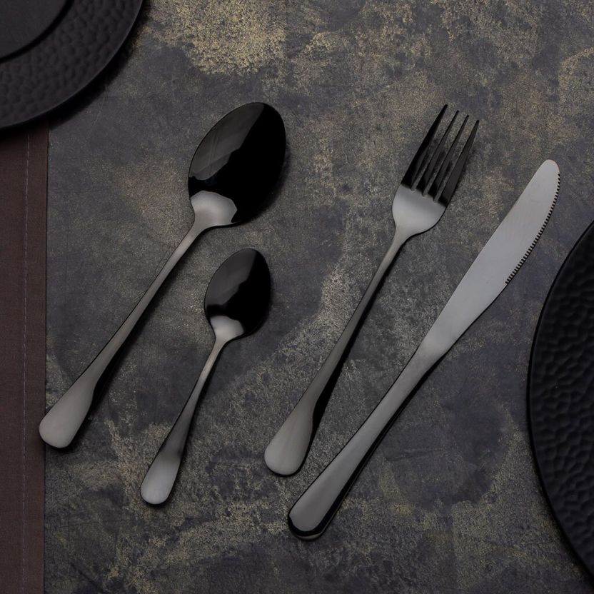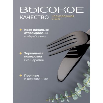 Набор столовых приборов «Классика» на 6 персон — это оптимальный выбор для тех, кто ищет сочетание современного дизайна и практичности. Благодаря черному глянцевому покрытию приборы смотрятся дорого и гармонично вписываются в любой интерьер. Если вы спрашиваете, какой набор столовых приборов лучше выбрать для ежедневного использования или подарка — обратите внимание на нержавеющую сталь, ведь она долговечна, не впитывает запахи и легко очищается.