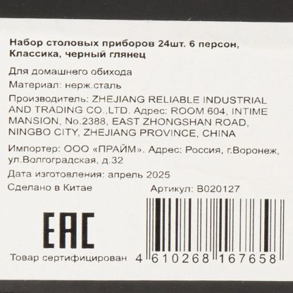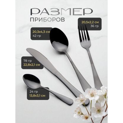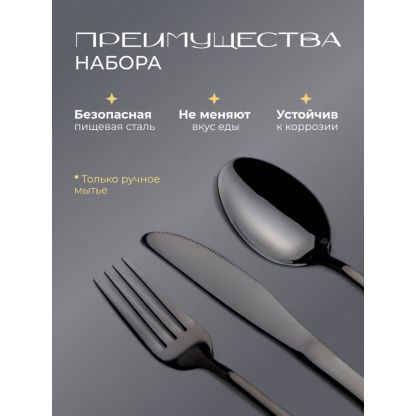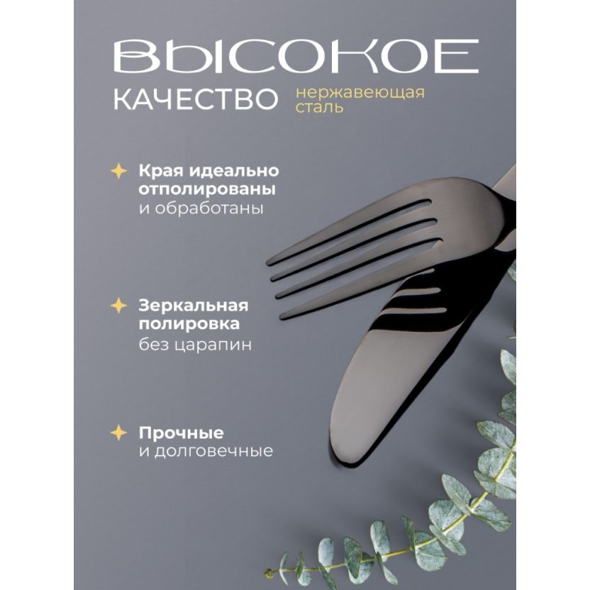Набор столовых приборов 24 шт. на 6 персон «Классика» — стильный черный глянец для вашего стола. Идеальный подарок, элегантность и долговечность в каждой детали.