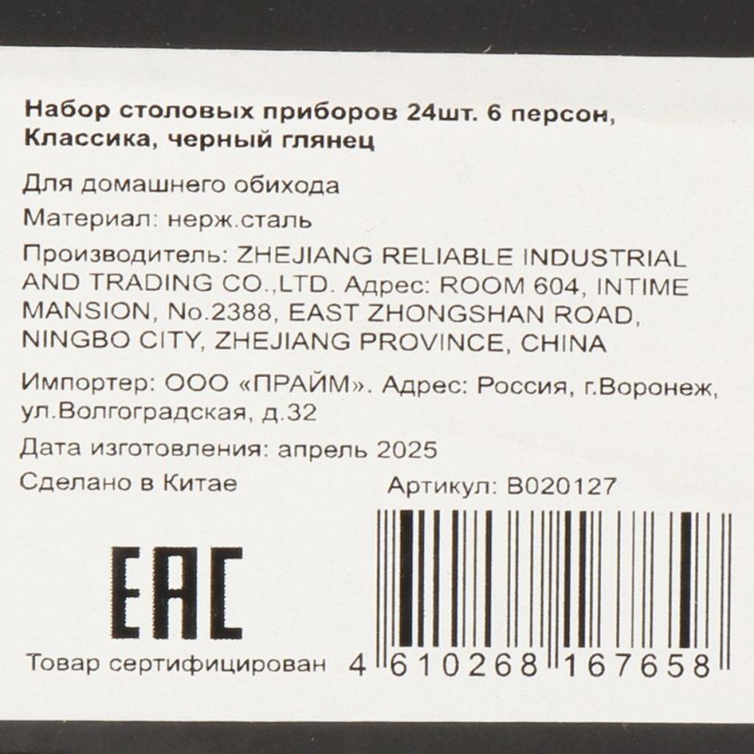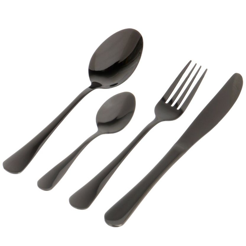 Набор столовых приборов нержавеющая сталь, 24 предмета, черный глянец, Классика, B020127, 6 персон