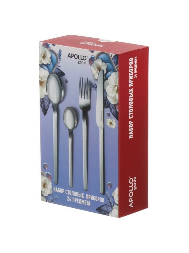 Набор столовых приборов Apollo genio Ardeno ARD-24 — это 24 предмета из высококачественной нержавеющей стали, рассчитанные на 6 персон. Серебристый цвет и современный дизайн подойдут для сервировки любого стола. Благодаря отсутствию покрытия приборы безопасны для здоровья, легко моются в посудомоечной машине и не требуют особого ухода. Если вы ищете, какой столовый набор лучше выбрать для семьи или что подарить на новоселье, обратите внимание на этот комплект: он сочетает стиль, долговечность и универсальность.