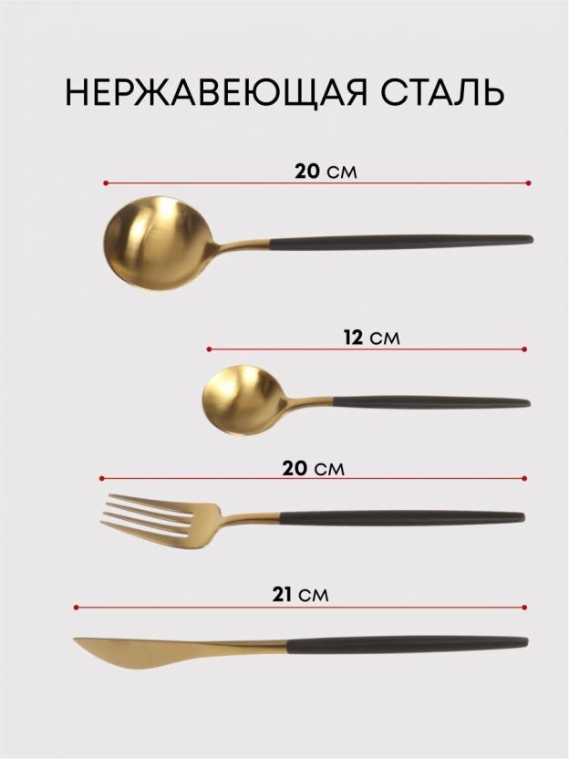 Выберите этот набор столовых приборов, чтобы подчеркнуть индивидуальность вашей сервировки и порадовать близких стильным подарком. Закажите сейчас — получите выгодную цену и гарантию качества от проверенного продавца.