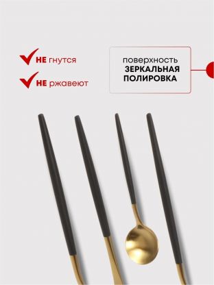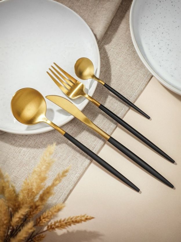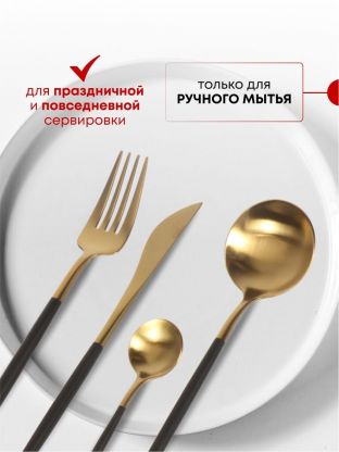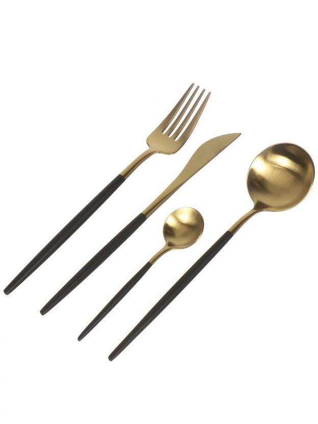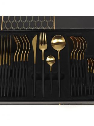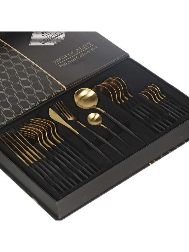 Набор столовых приборов нержавеющая сталь, 24 предмета, подарочная упаковка, Черный с золотым, Y6-10262