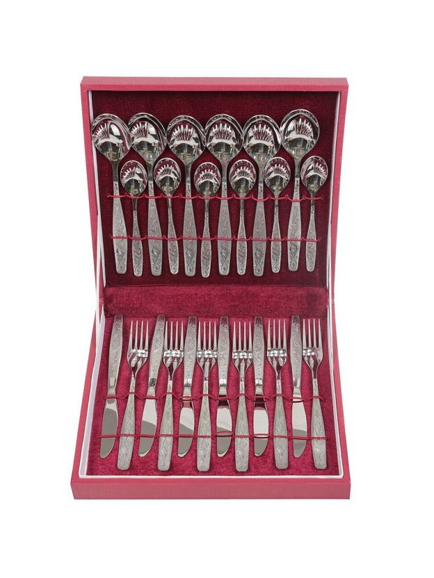 • Практичность: 24 предмета на 6 персон, подходят для мытья в посудомоечной машине, устойчивы к коррозии