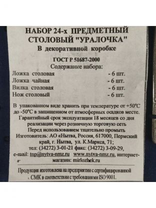 В наборе 24 предмета на 6 персон: столовые и чайные ложки, вилки и ножи. Модель Уралочка М13 — идеальный вариант для полноценной сервировки стола.