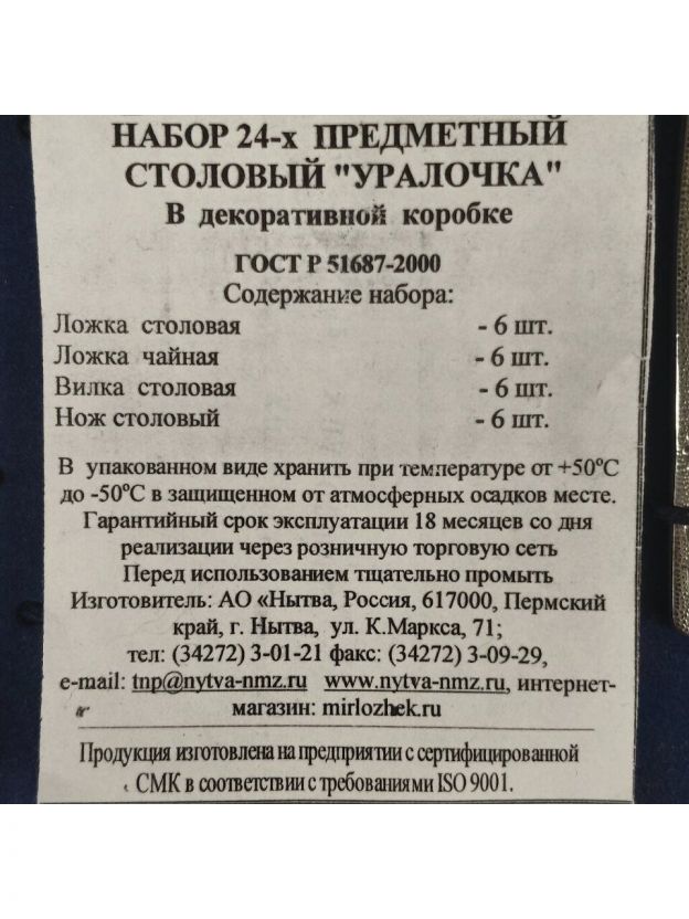 Подарочный набор столовых приборов из нержавеющей стали на 6 персон — 24 предмета Добросталь/Нытва Уралочка М13: стильный выбор для дома, дачи и подарка.