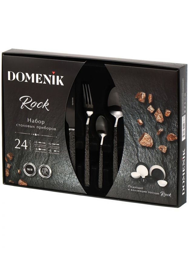 Набор столовых приборов нержавеющая сталь, 24 предмета, подарочная упаковка, Domenik, Rock Black, DMC035