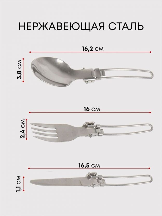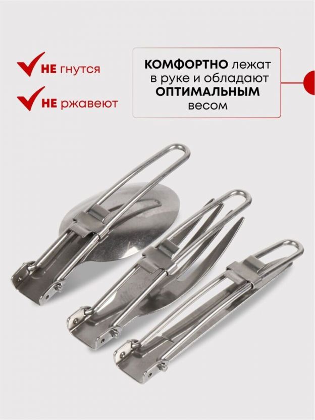 Набор столовых приборов походный, нержавеющая сталь, ложка 162х38 мм, вилка 160х24 мм, нож 165х11 мм