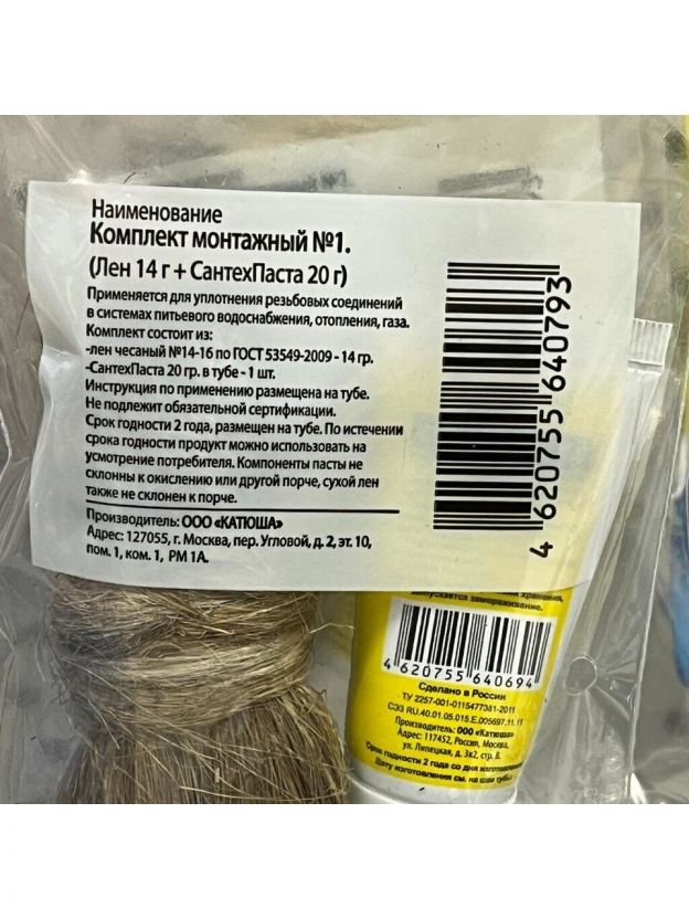 Набор уплотнительный 20 г, паста + лен 14 г, СантехКреп, 2.2.4