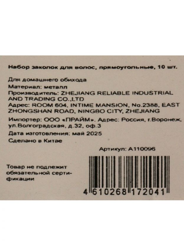 Набор заколок для волос A110096 — 10 прямоугольных заколок для стильной укладки, быстрой фиксации и аккуратного образа. Решение для дома, работы и подарка. Почему выбирают: Универсальная форма — прямоугольные заколки подходят для волос любой длины и густоты Оптимальный размер и прочный пластик — выдерживают ежедневное использование, не ломаются и не царапают кожу головы Выгодно для семьи и подарков — 10 штук в наборе, удобно брать с собой на дачу или использовать для создания образов на каждый день Набор заколок для волос A110096 — это практичный аксессуар, который легко решает вопрос быстрой и надежной фиксации прически. Прямоугольная форма подходит для тонких и густых волос, а пластиковый корпус устойчив к деформациям и не электризует волосы. Если вы ищете, какие заколки выбрать для ежедневной укладки или что лучше для аккуратной фиксации на работе и дома, обратите внимание на этот набор: он рассчитан на долгий срок службы и универсален по стилю. Отвечая на популярные запросы «как использовать набор заколок», отмечаем: их удобно применять для создания хвостов, пучков, разделения прядей при окрашивании или укладке. В отличие от металлических аналогов, пластиковые заколки из этого комплекта не оставляют заломов и не вызывают дискомфорта при длительном ношении. Подходит ли для детских волос? Да, благодаря безопасному механизму и гладким краям заколки можно использовать даже для чувствительной кожи головы. Выбирая, какой набор заколок купить недорого для дачи или поездки, обратите внимание на упаковку из 10 штук: это выгодно, удобно и позволяет всегда иметь запас аксессуаров под рукой. Закажите сейчас — и получите стильные заколки, которые прослужат долго и сохранят аккуратность вашей укладки. Частые вопросы: Сколько заколок в наборе и какого они размера? В комплекте 10 прямоугольных заколок стандартного размера, подходящих для большинства типов волос. Подходят ли эти заколки для густых и длинных волос? Да, прочная конструкция и оптимальная длина обеспечивают надежную фиксацию даже объемных прядей. Можно ли использовать заколки для детских и чувствительных волос? Да, пластиковые заколки с гладкими краями безопасны для детских волос и не травмируют кожу головы.