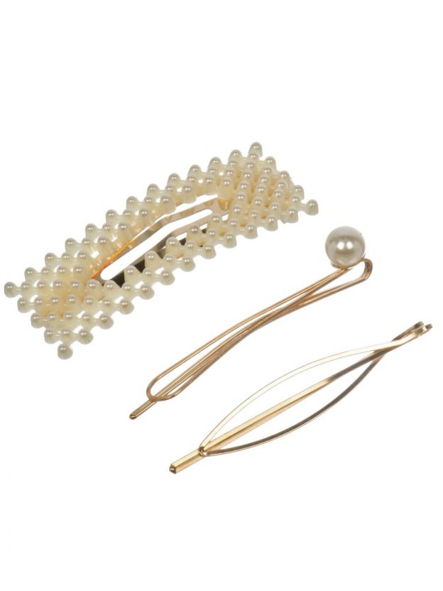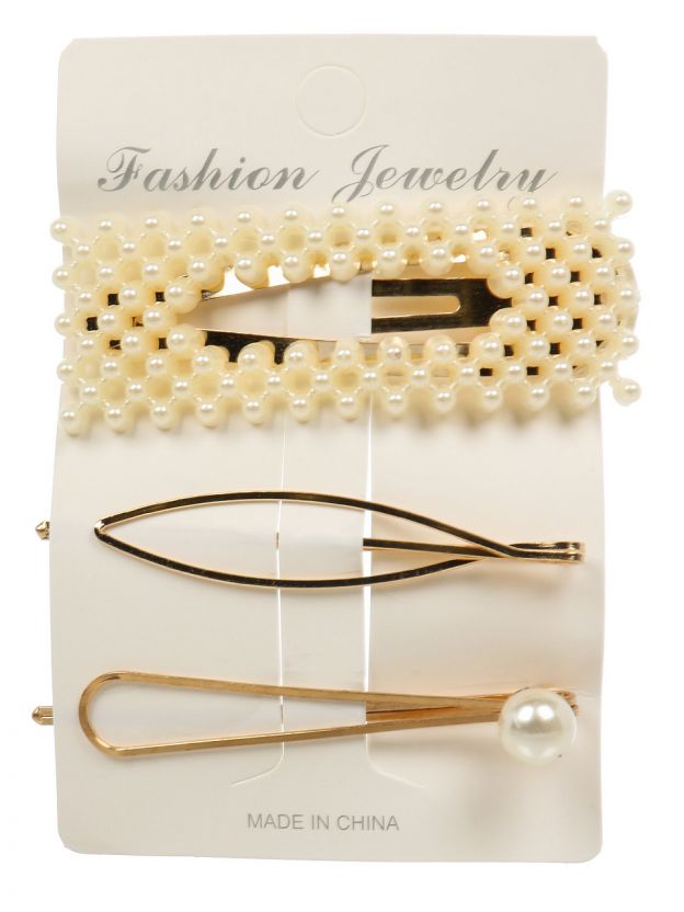 Набор заколок 7.5х1.5х10.5 см, 3 шт, металл, для волос, с жемчугом, A110089