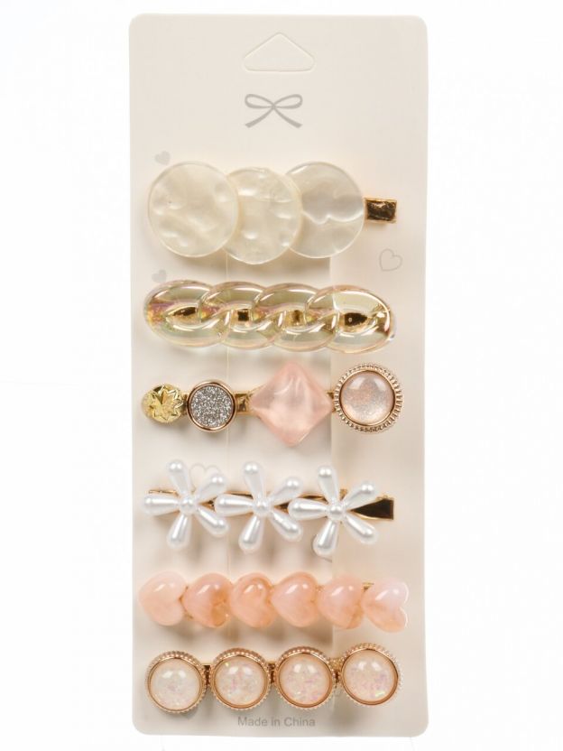 Набор заколок 7х2х17.5 см, 6 шт, металл, резина, розовый, A110115