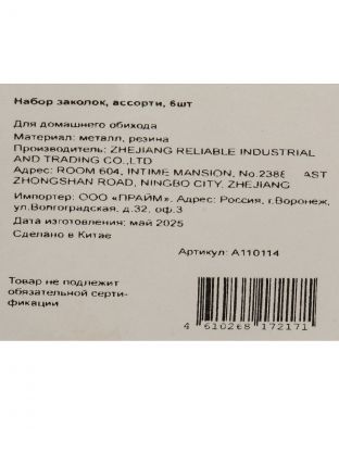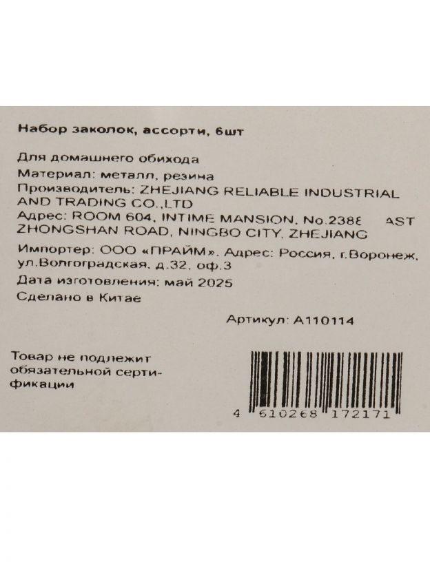 Набор заколок ассорти 6 шт. A110114 — стильное решение для волос: экономьте время на укладке, создавайте образы для дома, дачи и праздников.
