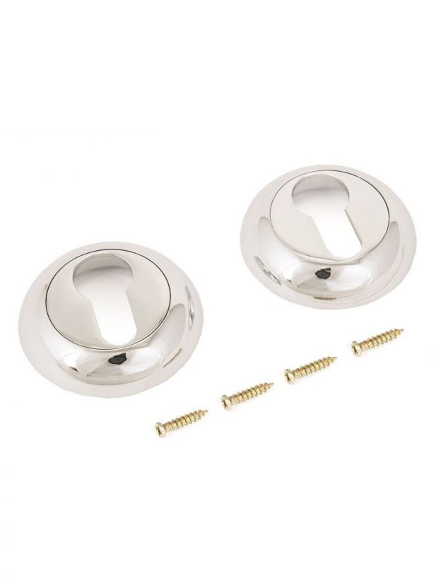 Накладки используют на финальной стадии монтажа замка, когда необходимо закрывать просвет между цилиндром и дверным полотном. Как правило, устанавливаются в комплекте с раздельными ручками на круглой накладке аналогичного цвета. Накладка совместима с любыми врезными замками под евроцилиндр.