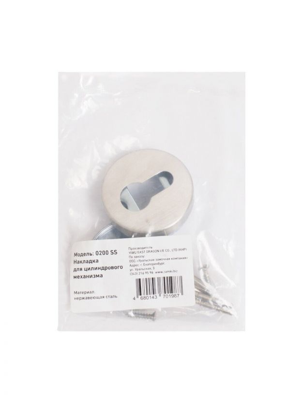 Накладка цилиндровая, Стандарт, 0200 SS Inox, нержавеющая сталь, 14 876