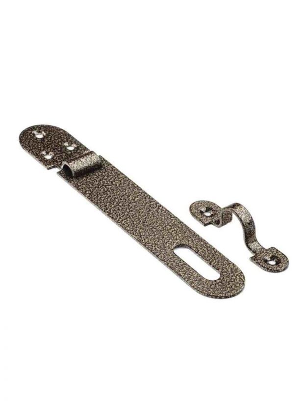 Дверная накладка с проушиной предназначена для запирания двери, небольших ворот или деревянной калитки с помощью навесного замка. Накладка антивандальная: когда дверь заперта, корпус изделия перекрывает крепежные отверстия, исключая возможность скручивания механизма.
