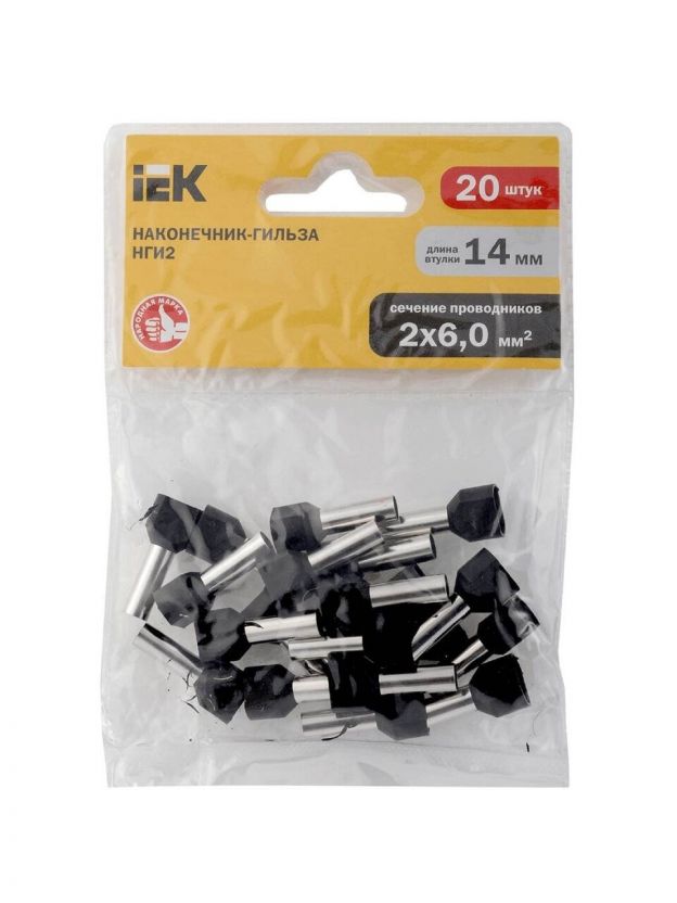Наконечник-гильза НГИ2 6,0-14, медь, черный, 20 шт, IEK, UTE10-4-D6-0-100