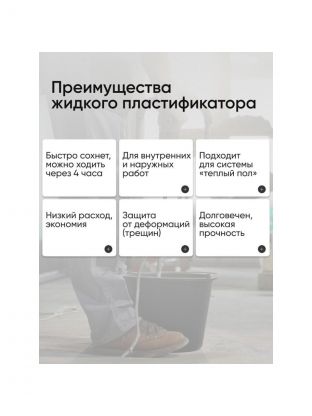 Благодаря возможности ходить по поверхности уже через 4 часа, вы можете быстрее приступить к следующему этапу работ.