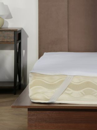 Размер 160х200 см, высота борта — 30 см, подходит для стандартных и высоких матрасов, надежно фиксируется резинкой по периметру.