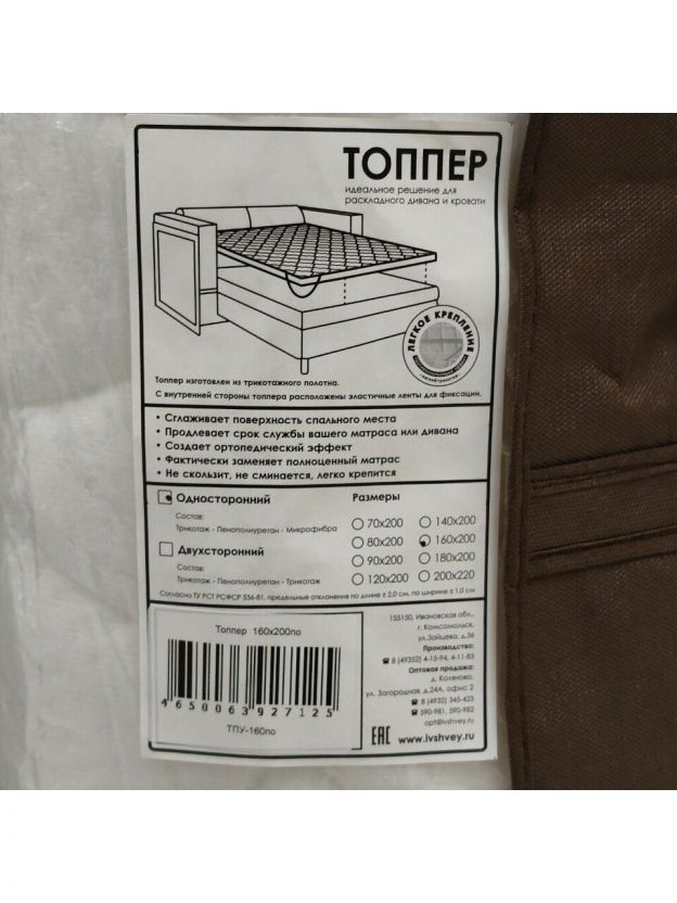 Изделие предназначено для повышения комфортности сна, позволяет замаскировать все недостатки спального места: неровности, стыки. Не скользит, не сминается, легко крепится. Создает анатомический эффект за счет упругого наполнителя.