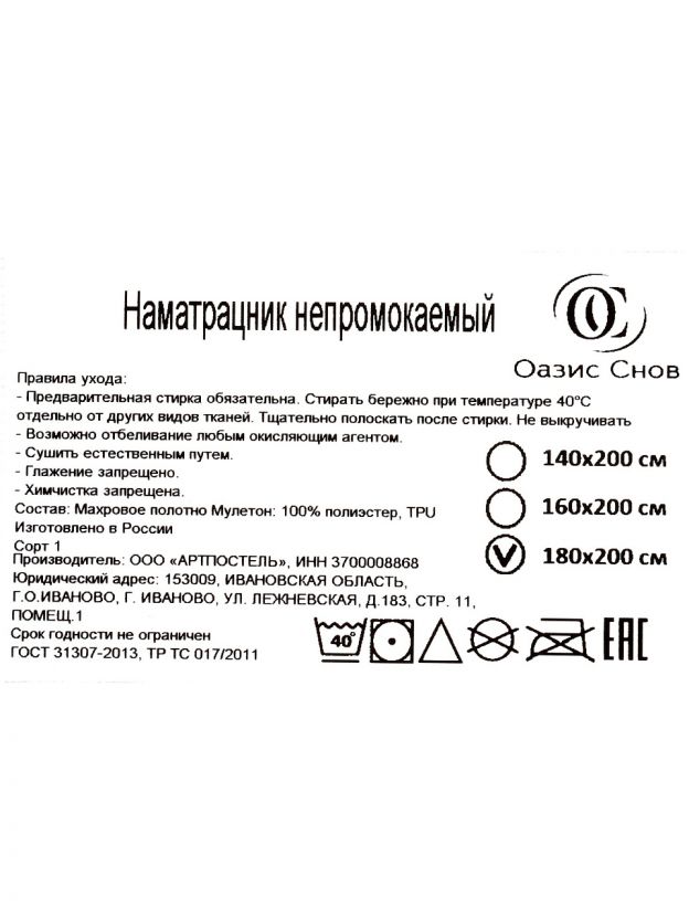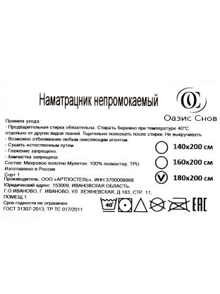 Выберите наматрасник с такими же длиной и шириной — 180х200 см. Высота борта 30 см подходит для стандартных и высоких матрасов, фиксируется резинкой.