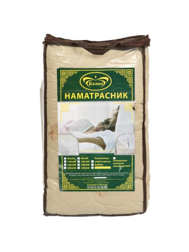 Наматрасник 180х200 см, бязь, Овечья шерсть, водонепроницаемый, на резинке, Бэлио, стеганый, НОШ-180