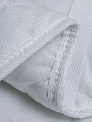 Данная модель не защищает от пролитой жидкости, но отлично справляется с пылью и загрязнениями. Стёганый синтепон (200 г/м2) делает наматрасник мягче и долговечнее по сравнению с тонкими аналогами.
