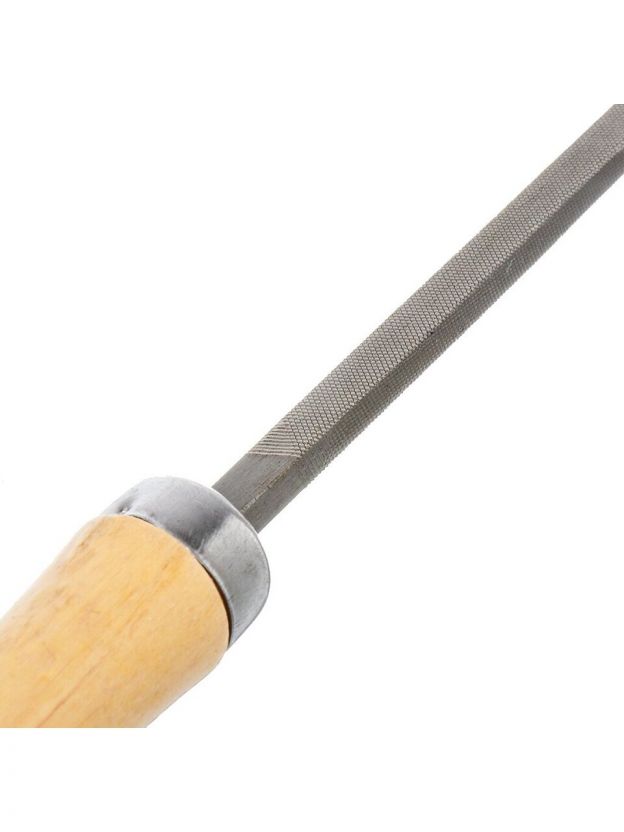 Важная характеристика напильника — форма поперечного сечения. Напильники с прямоугольным сечением удобны для обработки ровных поверхностей большой площади, с круглым, треугольным и квадратным — для обтачивания пазов, канавок, отверстий. Напильники с полукруглым сечением, в этом плане, универсальны. Ширина напильника - 6 мм.