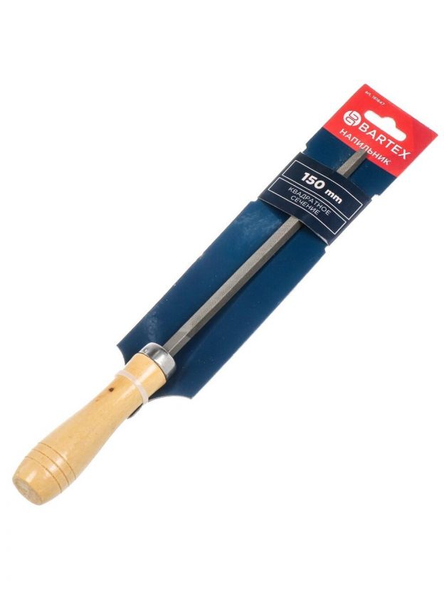 Напильник квадратный, 6х150 мм, №2, деревянная ручка, Bartex, 12001