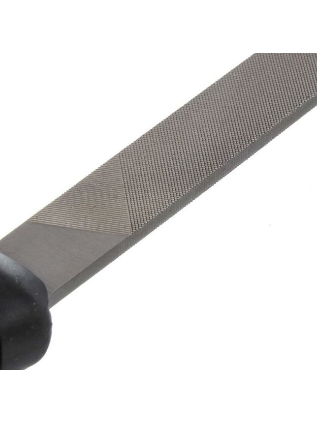 Плоский напильник - это незаменимый инструмент для обработки различных поверхностей, таких как металл, дерево или пластик. Его форма позволяет выполнять широкий спектр задач, от зачистки неровностей до придания формы деталям. Пластиковая рукоятка обеспечивает комфорт при удержании инструмента и предотвращает скольжение в руке. Плоский напильник является необходимым инструментом в наборе домашнего мастера или профессионального слесаря.