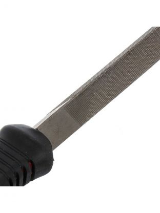 Трехгранный напильник используется при слесарных работах и мелком ремонте для опиливания и подгонки металлических деталей, зачистке клемм, обработке небольших отверстий или мелких пазов. Он имеет треугольное сечение, что обеспечивает удобство работы в труднодоступных местах. Пластиковая рукоятка обеспечивает комфорт при удержании инструмента и предотвращает скольжение в руке. Трехгранный напильник является необходимым инструментом в наборе домашнего мастера или профессионального слесаря.