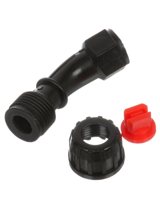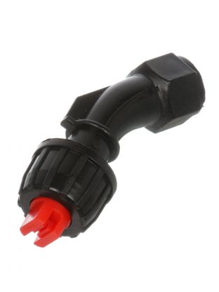 Как использовать насадку? Просто установите её на штангу опрыскивателя, закрепите до щелчка и настройте угол распыления. Насадка чёрного цвета, что делает её менее заметной на оборудовании и облегчает уход.