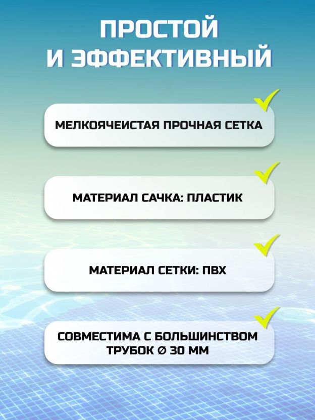 - универсальность: подходит для каркасных и надувных бассейнов;