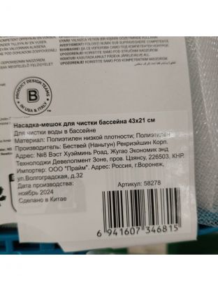 Насадка-мешок для чистки бассейна 43х21 см, Bestway, 58278BW