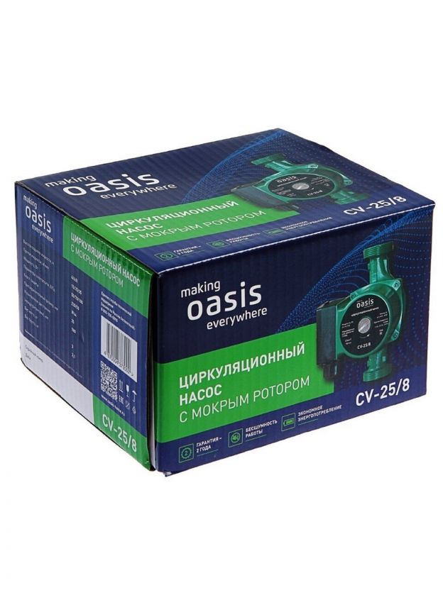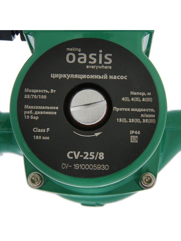 Насос циркуляционный, Oasis, 1 '', 100 Вт, максимальный напор 8 м, 2.4 м3/ч, 25/8