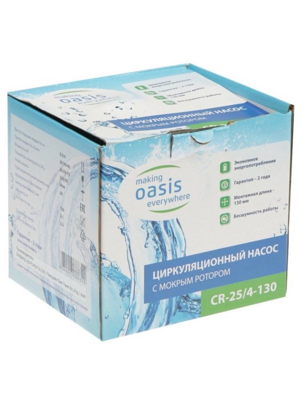 Насос циркуляционный, Oasis, 1 '', 72 Вт, максимальный напор 4 м, 1.8 м3/ч, 25/4-130