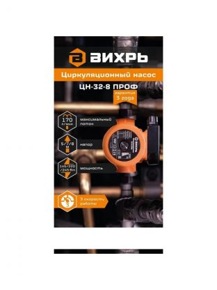 Насос циркуляционный, Вихрь, 2 '', 245 Вт, максимальный напор 8 м, 7.8 м3/ч, Проф ЦН-32-8