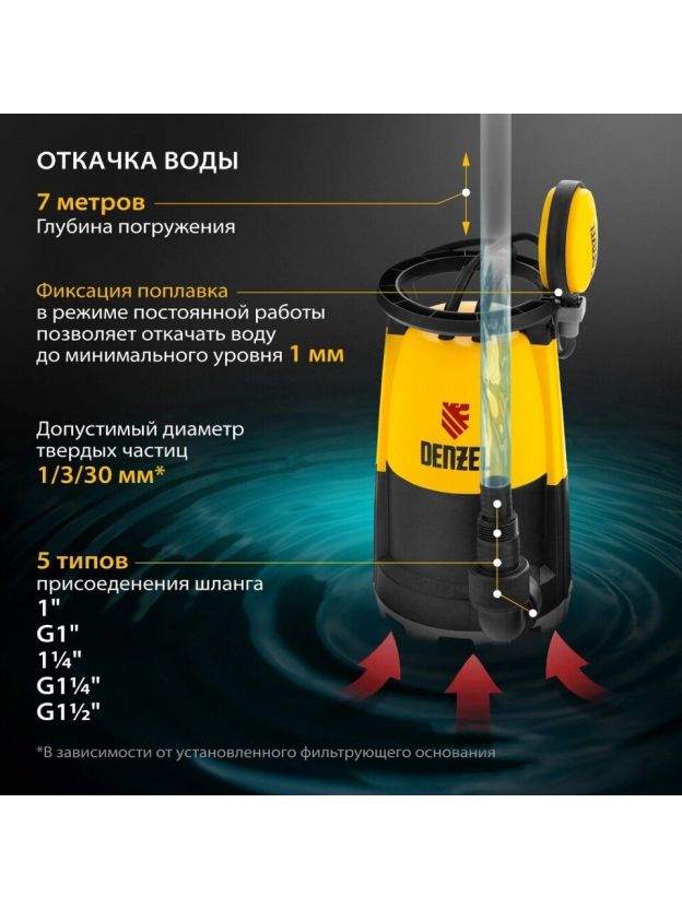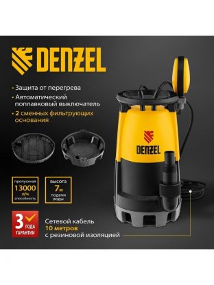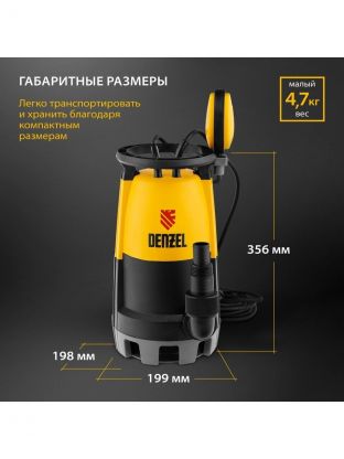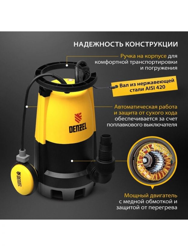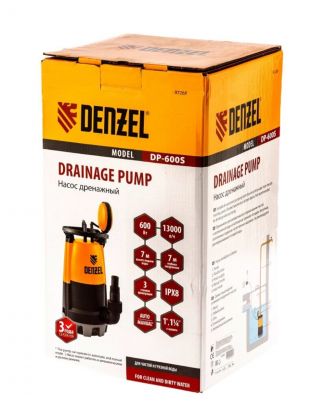 Дренажный насос DP600S торговой марки Denzel предназначен для откачивания сточных вод из затопленных подвальных помещений.