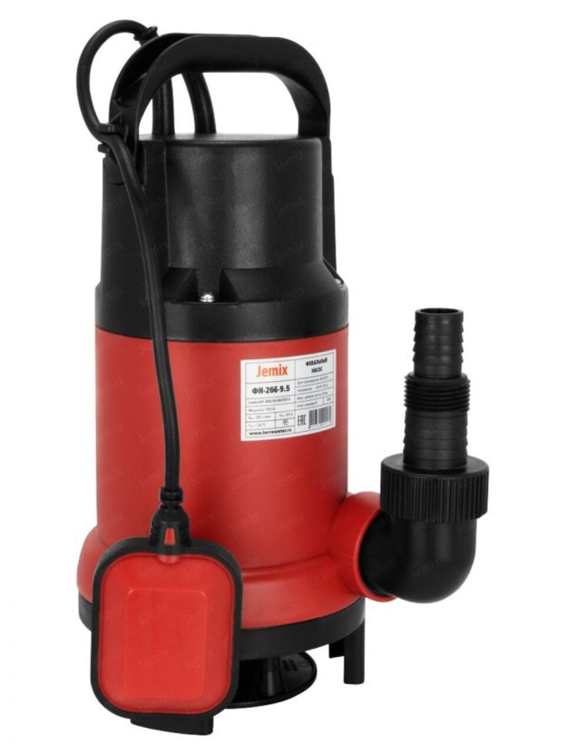 Насос дренажно-фекальный, Jemix, 750 Вт, глубина погружения 5 м, максимальный напор 8 м, 13.5 м3/ч, ФН-225-8