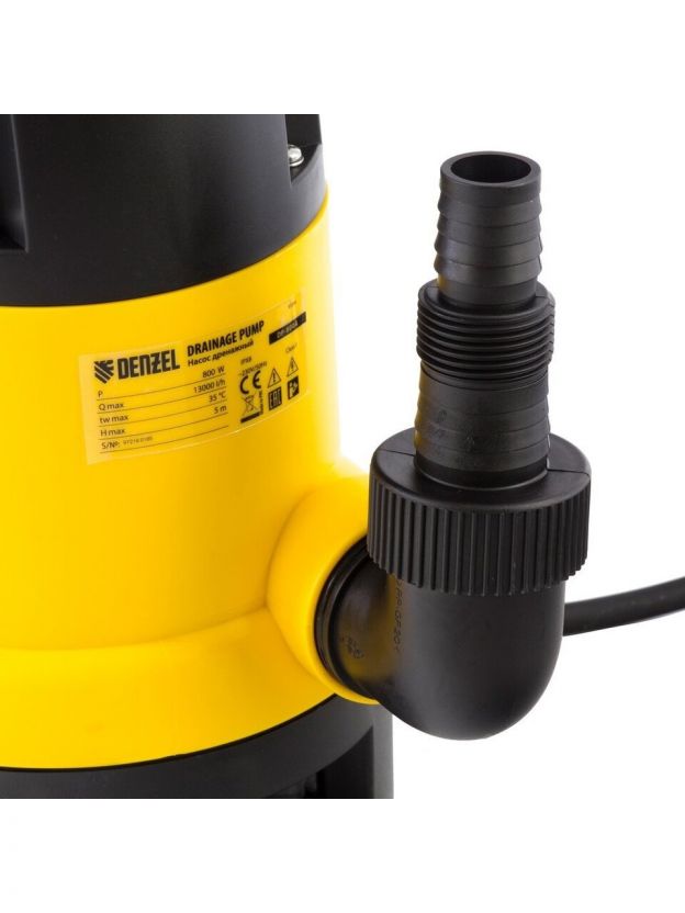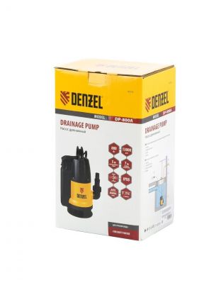 Насос дренажный, Denzel, 800 Вт, глубина погружения 7 м, 13 м3/ч, подъем 5 м, 13000 л/ч, DP800A