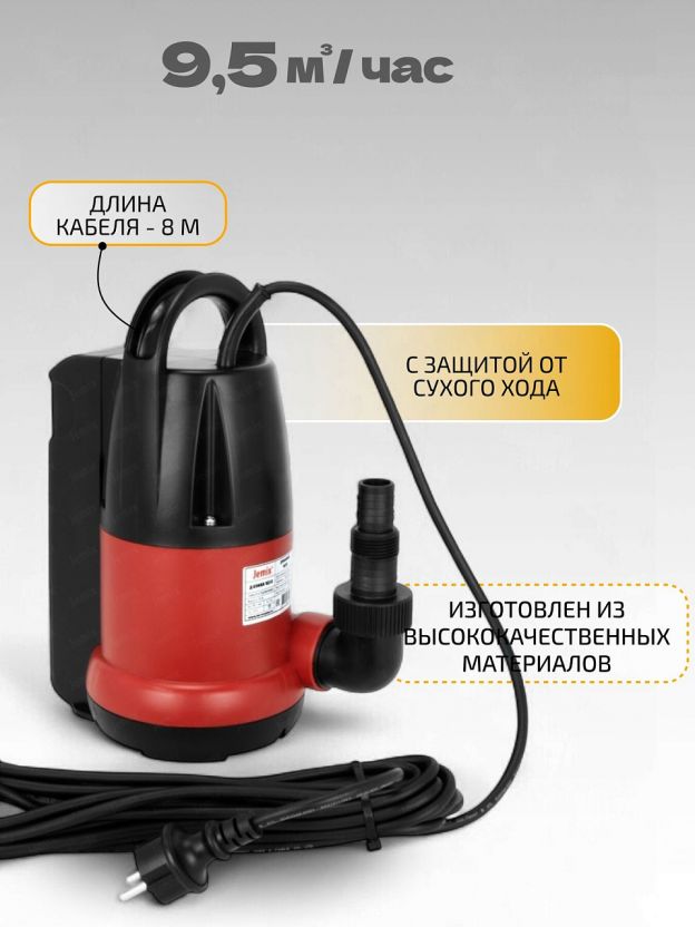 Насос дренажный, Jemix, 550 Вт, глубина погружения 5 м, максимальный напор 8 м, 9.5 м3/ч, Д-КОМБИ-158-8