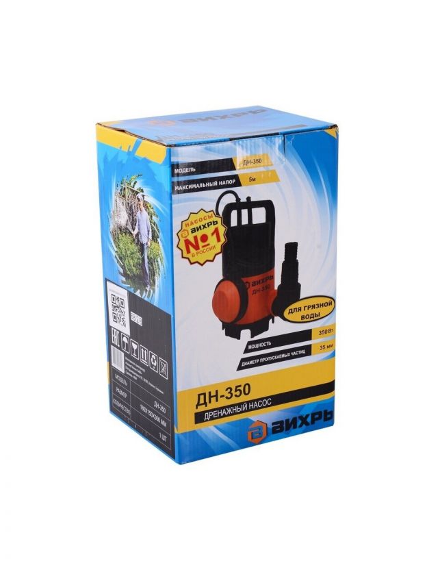 Дренажный насос ВИХРЬ ДН-350 предназначен для откачивания и отведения воды и стоков с инородными примесями из различных водоёмов и резервуаров (котлованов, шахт, сливных ям и т.д). С их помощью можно выкачивать воду в случае подтопления жилых помещений и подвалов. Электродвигатель насоса асинхронный, однофазный с короткозамкнутым ротором. Корпус изготовлен из прочного пластика. Максимальная глубина всасывания составляет не более 5 метров. Температура перекачиваемой жидкости должна быть от +1°С до +35°С. Не допускается работа дренажного насоса "в сухую" (без воды), попадание воздуха во всасывающую магистраль.