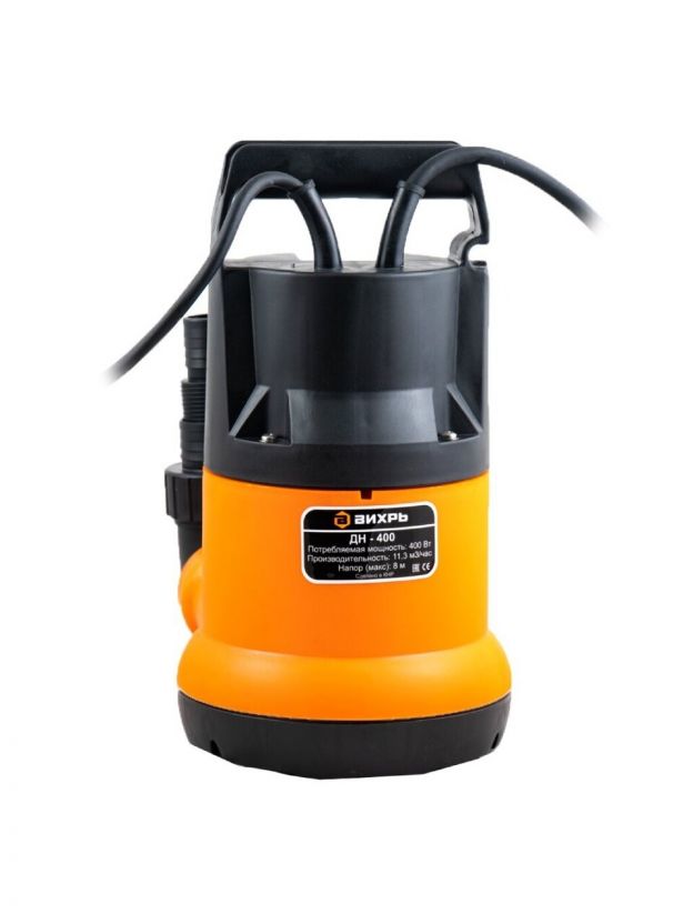 Насос дренажный, Вихрь, 400 Вт, глубина погружения 8 м, максимальный напор 8 м, 11.28 м3/ч, ДН-400