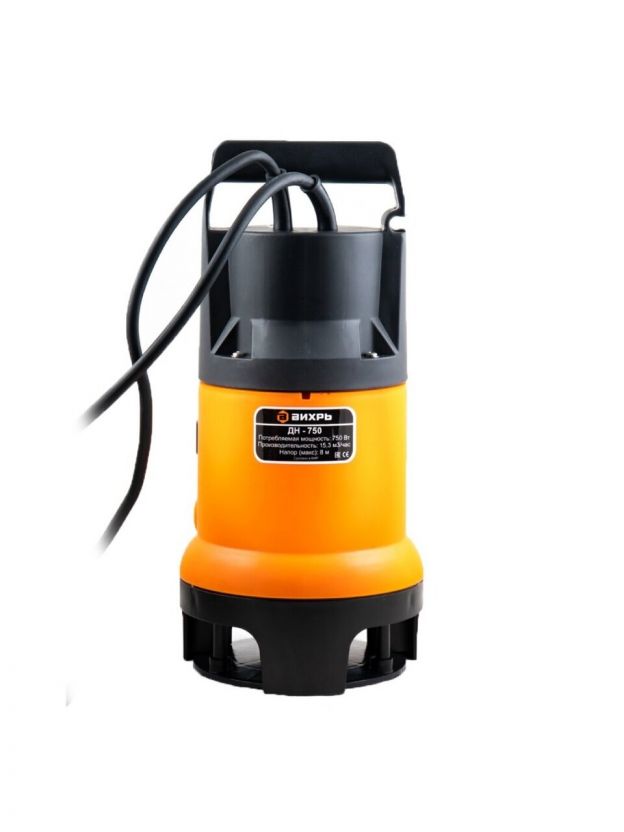 Насос дренажный, Вихрь, 750 Вт, глубина погружения 8 м, максимальный напор 8 м, 15.3 м3/ч, ДН-750