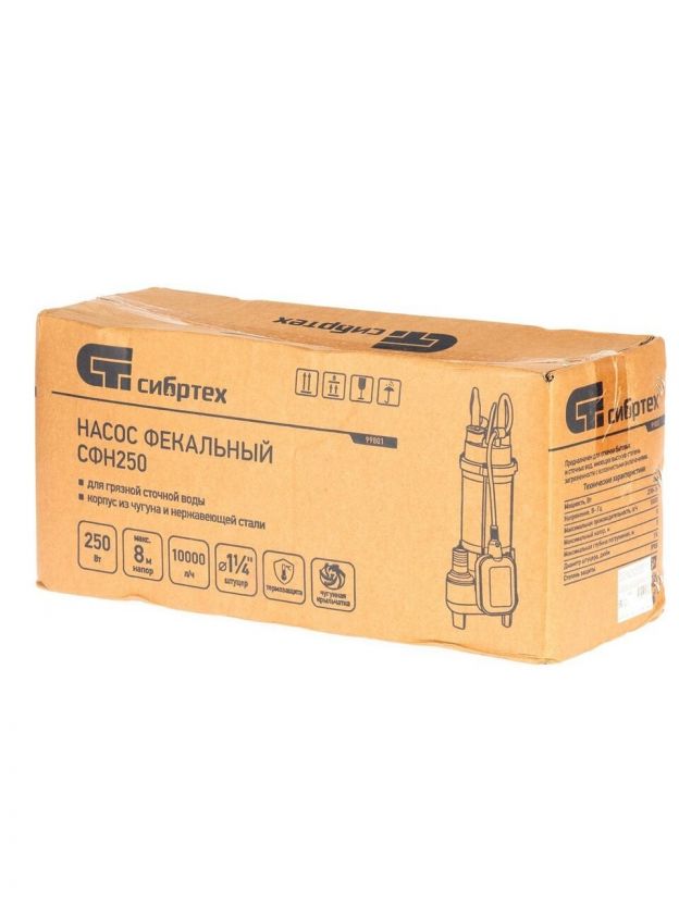 Фекальный насос Сибртех СФН250 имеет мощность 250 Вт и производительность до 10000 л/ч и применяется для откачки грязной воды из затопленных помещений, нечистот из выгребных ям и канализации. Также его можно использовать для организации принудительной канализационной системы или системы полива на даче. Насос подходит для работы с холодными стоками, при этом температура перекачиваемой жидкости не должна превышать 35 °C.