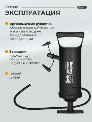 - Имеет три насадки, которые позволяют использовать его для накачивания различных предметов. Вы можете выбрать нужную насадку в зависимости от того, что вы хотите накачать.
